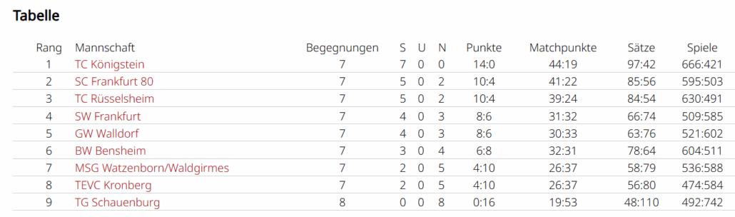 Bereits am vorletzten Spieltag der Saison sicherten sich unsere Hessenligaspielerinnen um Mannschaftführerin Anja Bendner mit einem souveränen Heimsieg gegen GW Walldorf vorzeitig die Meisterschaft und damit das Recht auf den Aufstieg in die Regionalliga Süd-West! Das klare 9:0 des 6er-Teams war dabei der verdiente 7. Sieg im siebten Spiel.